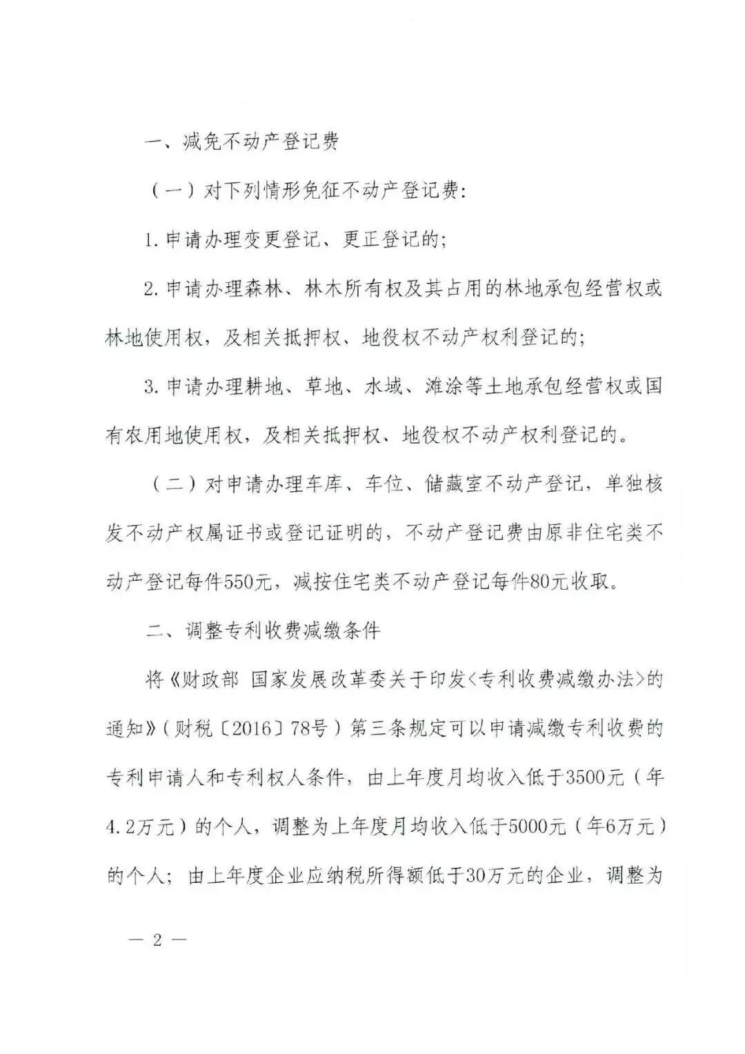 根據近日公布的財稅[2019]45號《財政部 國家發展改革委關于減免部分行政事業性收費有關政策的通知》,自2019年7月1日,對專利費用減緩條件進行了調整,調整如下: 其中個人申請:由上年度月均收入低于3500元(年4.2萬元),調整為上年度月均收入低于5000元(年6萬元)。 其中單位申請:由上年度企業應納稅所得額低于30萬元,調整為上年度企業應納稅所得額低于100萬元。 附 財政部 國家發展改革委關于減免部分行政事業性收費有關政策的通知 財稅[2019]45號 自然資源部、國家知識產權局,各省、自治區、直轄市、計劃單列市財政廳(局)、發展改革委、物價局,新疆生產建設兵團財政局、發展改革委: 按照國務院關于降費減負的決策部署,為進一步減輕社會負擔、激發市場活力,現就減免部分行政事業性收費有關政策通知如下: 一、減免不動產登記費 (一)對下列情形免征不動產登記費: 1.申請辦理變更登記、更正登記的; 2.申請辦理森林、林木所有權及其占用的林地承包經營權或林地使用權,及相關抵押權、地役權不動產權利登記的; 3.申請辦理耕地、草地、水域、灘涂等土地承包經營權或國有農用地使用權,及相關抵押權、地役權不動產權利登記的。 (二)對申請辦理車庫、車位、儲藏室不動產登記,單獨核發不動產權屬證書或登記證明的,不動產登記費由原非住宅類不動產登記每件550元,減按住宅類不動產登記每件80元收取。 二、調整專利收費減繳條件 將《財政部 國家發展改革委關于印發〈專利收費減繳辦法〉的通知》(財稅〔2016〕78號)第三條規定可以申請減繳專利收費的專利申請人和專利權人條件,由上年度月均收入低于3500元(年4.2萬元)的個人,調整為上年度月均收入低于5000元(年6萬元)的個人;由上年度企業應納稅所得額低于30萬元的企業,調整為上年度企業應納稅所得額低于100萬元的企業。 三、本通知自2019年7月1日起執行。 財政部 國家發展改革委 2019年5月8日